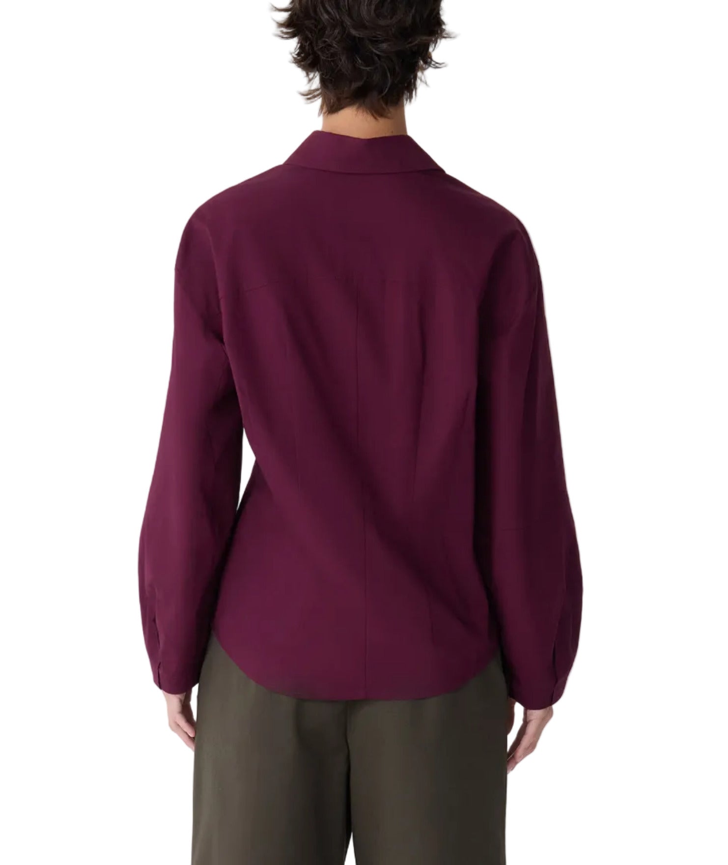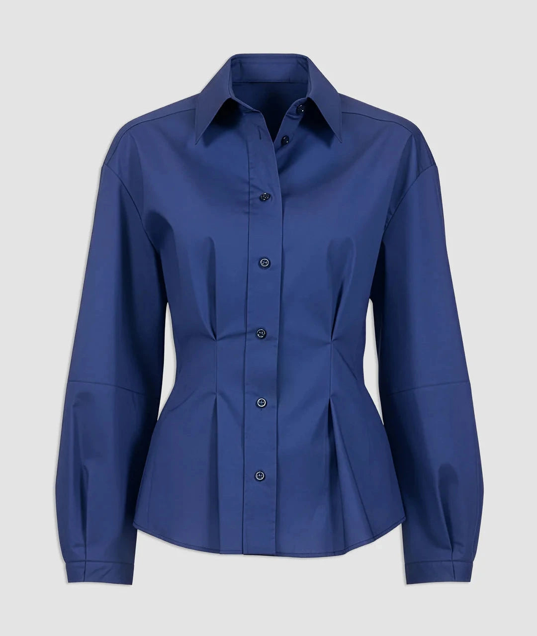 Lucia is a button front, point collar shirt with a fit and flare body shape created with pleated front detail. The full length sleeves feature a lantern shape also created with pleats. Made in a crisp cotton poplin.