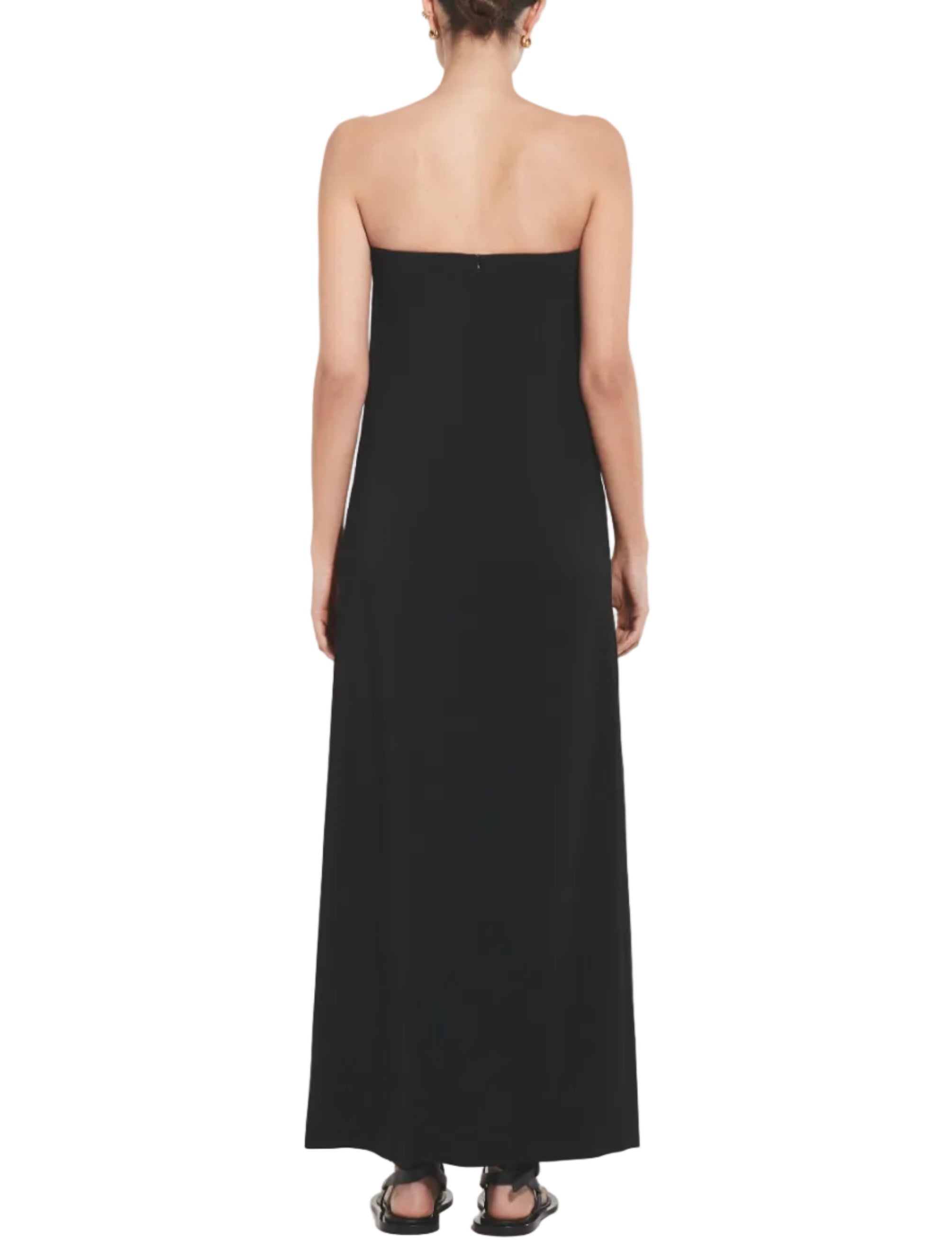 This elegant strapless column dress is crafted from luxurious stretch viscose crepe, offering a flattering silhouette that gracefully skims the body. Designed with an inner bustier for added support and structure and seamless back zipper. Perfect for formal occasions, this ivory dress combines timeless style with modern comfort, making it a standout piece in any wardrobe.
