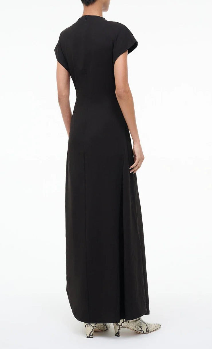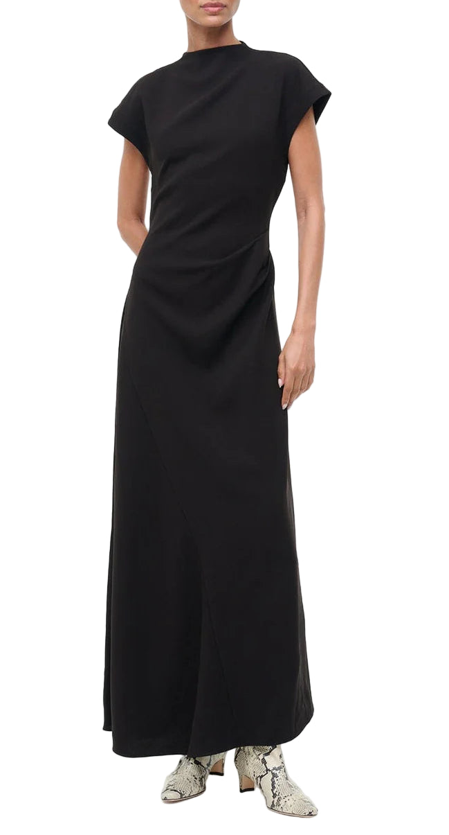 An a-line maxi dress crafted in a triacetate crepe, the Zaya Dress features cap sleeves and a flattering drape detail at the waist.