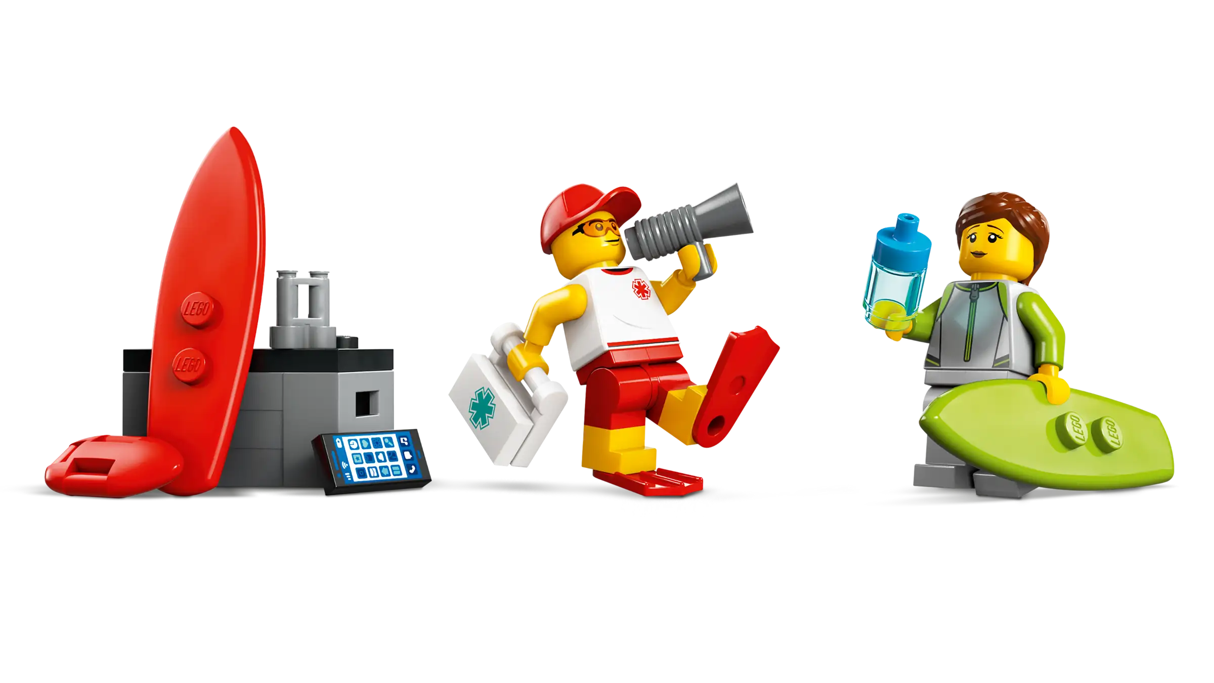 This beach rescue set includes a step-by-step printed building guide and 3D instructions in the LEGO Builder app – a digital building companion with intuitive zoom and rotate tools that enable kids to visualize models from all angles as they build.