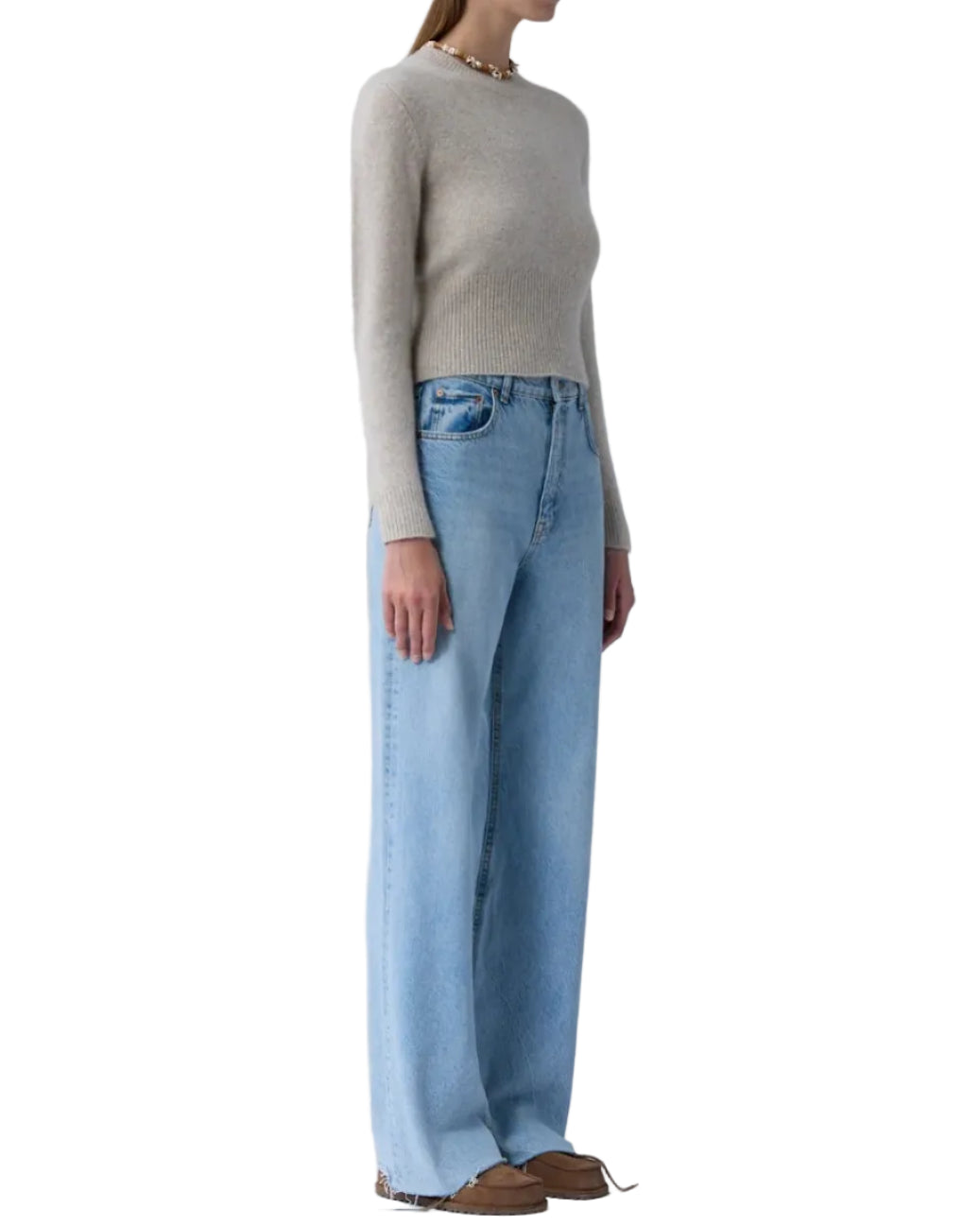Crafted from signature cashmere–silk yarn, the Alina Crew has a brushed, airy texture that feels soft and weightless. With a marled finish and easy silhouette, it pairs well with denim to elevate your finished look.