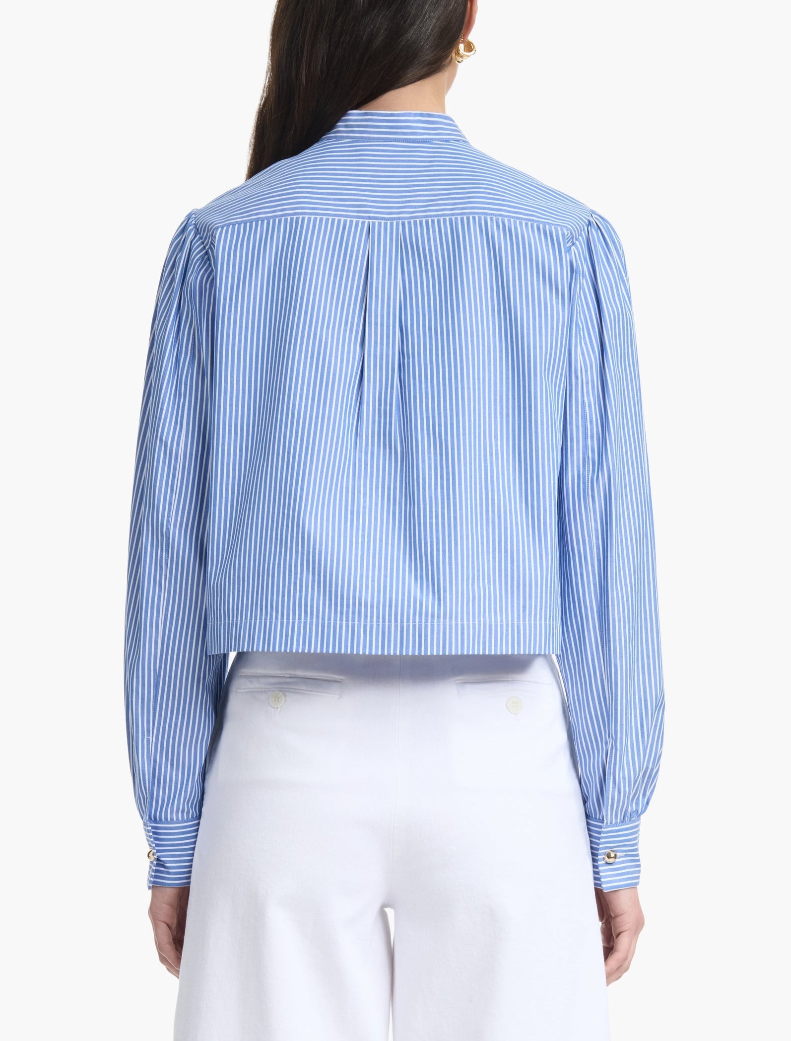The Margot top is a modern take on the classic shirt silhouette. Cut in Italy from cotton-poplin, it features a rounded collar with gold hammered buttons and subtle balloon sleeves.