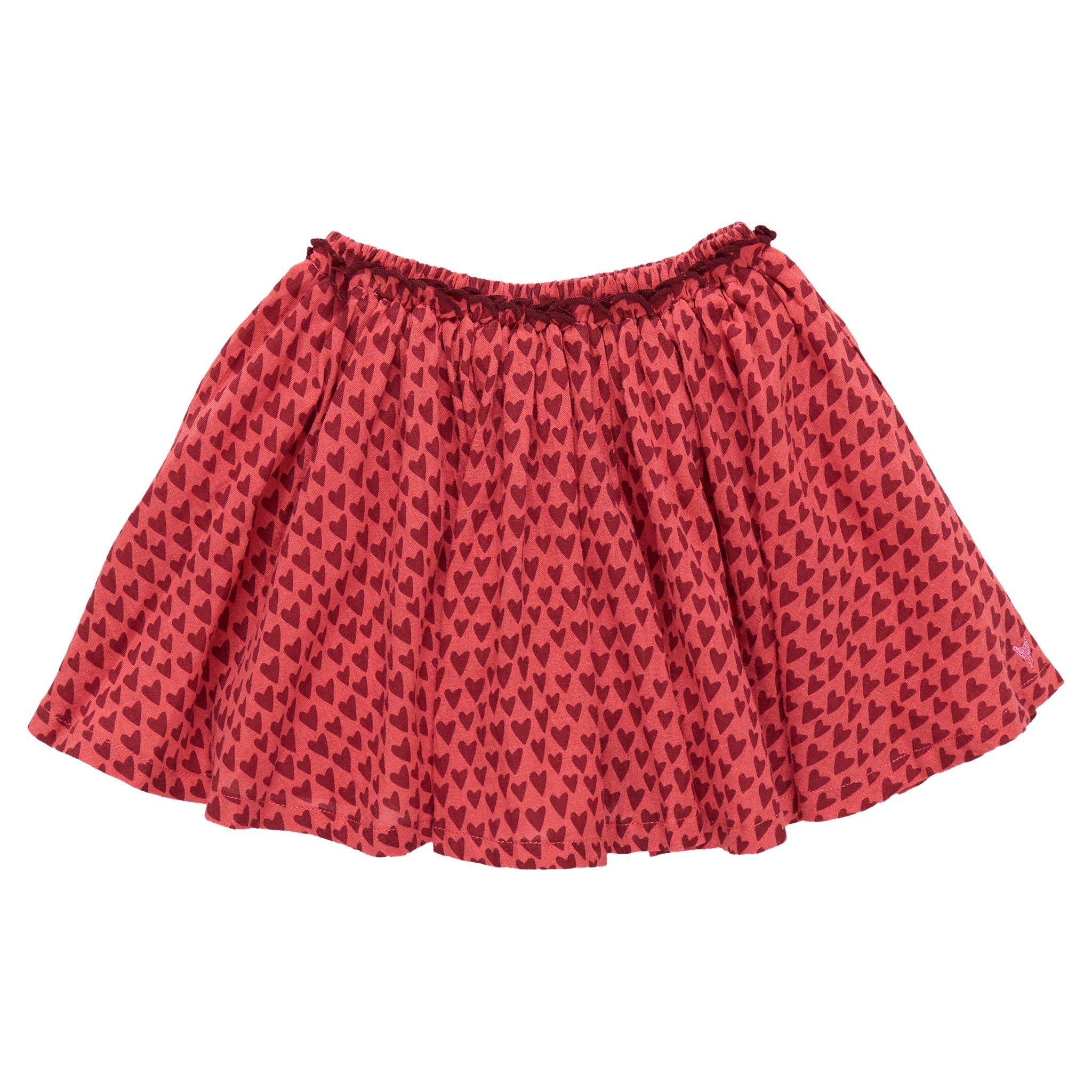 A pull-on favorite made for twirling! The Gianna Skirt features an allover mini red heart print, dark red pearl stitching, and a comfy elastic waistband. Easy to style with sweaters, tees, or tights for endless Valentine’s looks. Pair with matching Valentine’s styles for a love-filled Valentine’s Day moment.