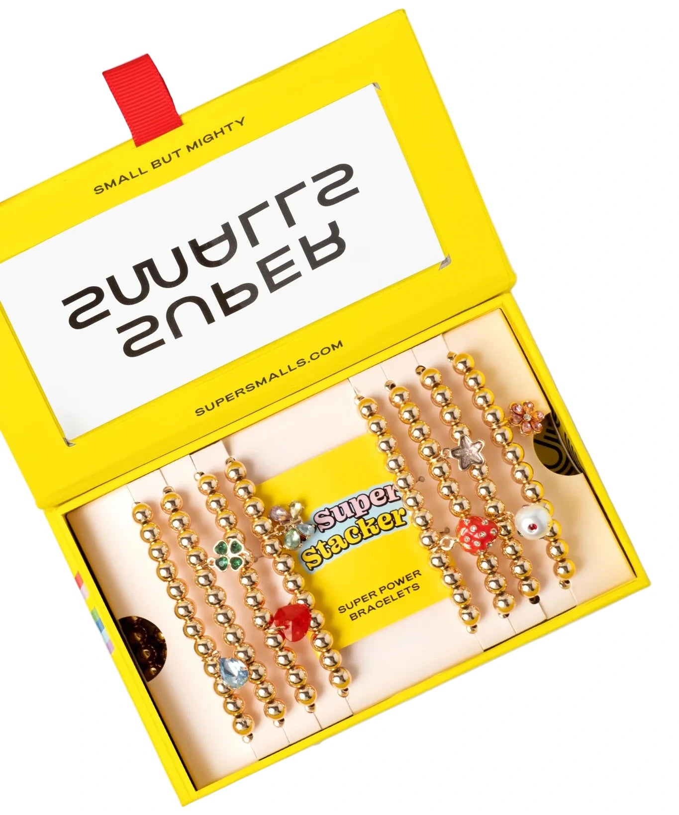 This set includes 8 matching bracelets that are stretchy and comfortable, the ultimate everyday accessory with a touch of sparkle. Mix-and-match with mom to create your own secret, love language.